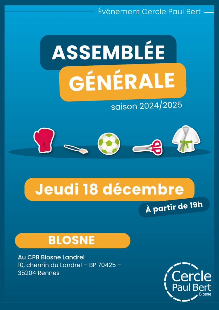 Chers Adhérents, bénévoles, parents et salariés, les membres élus du Comité de la section ont le plaisir de vous inviter à l’Assemblée Générale qui se tiendra le vendredi 30 janvier 2026 à partir de 19h au CPB Landrel.