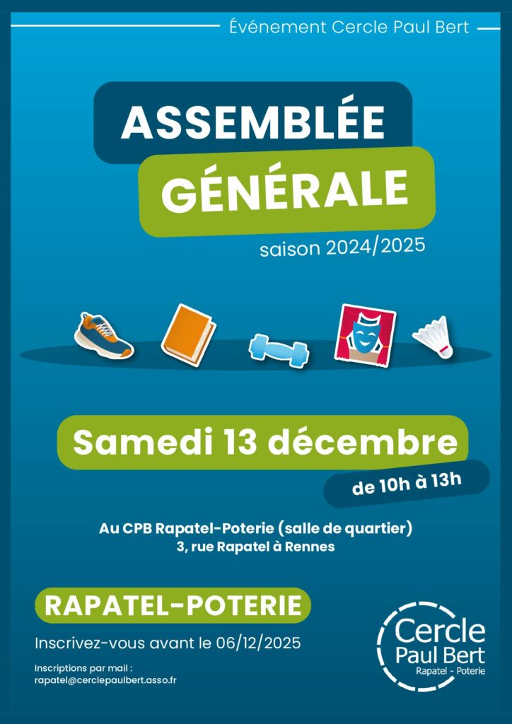 Le Cercle Paul Bert Rapatel-Poterie organise son assemblée générale le samedi 13 décembre de 10h à 13h.
