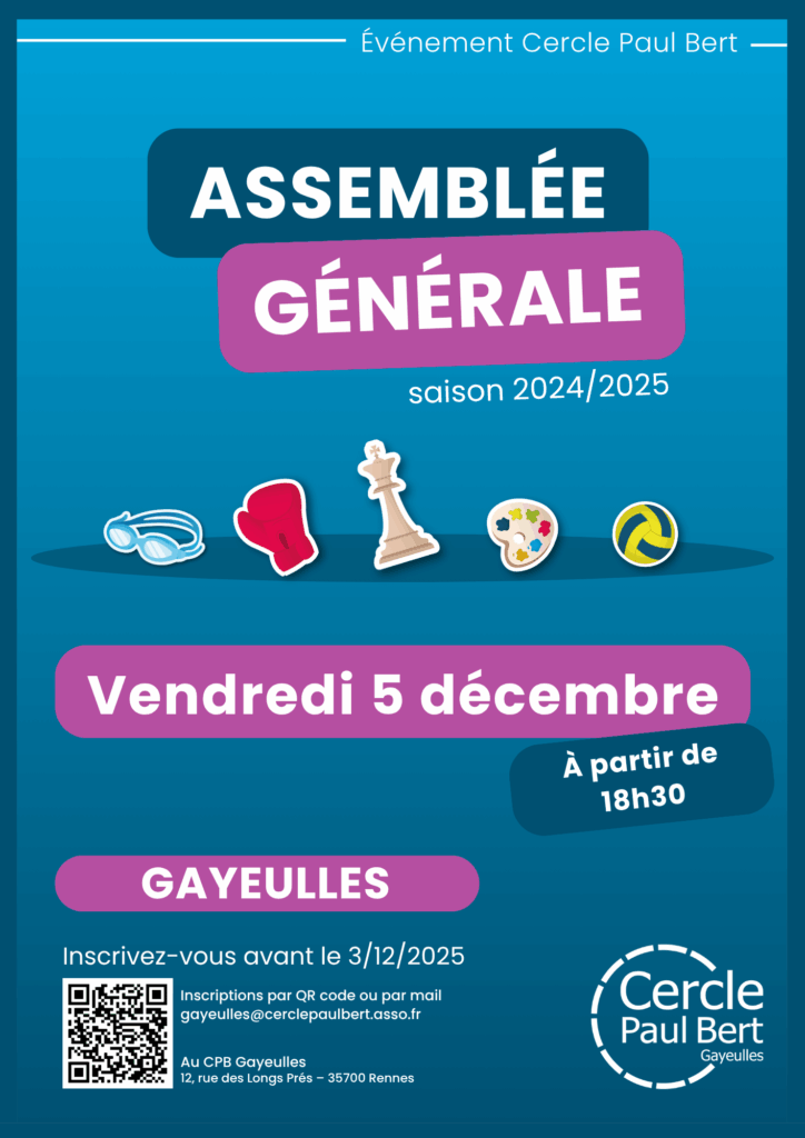 Le CPB Gayeulles organise son assemblée générale le vendredi 5 décembre 2024 à partir de 18h30.