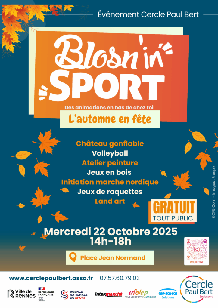 Le Cercle Paul Bert vous donne rendez-vous pour Blosn’in Sport – L’automne en fête, une journée d’activités gratuites et accessibles à tous au Blosne !