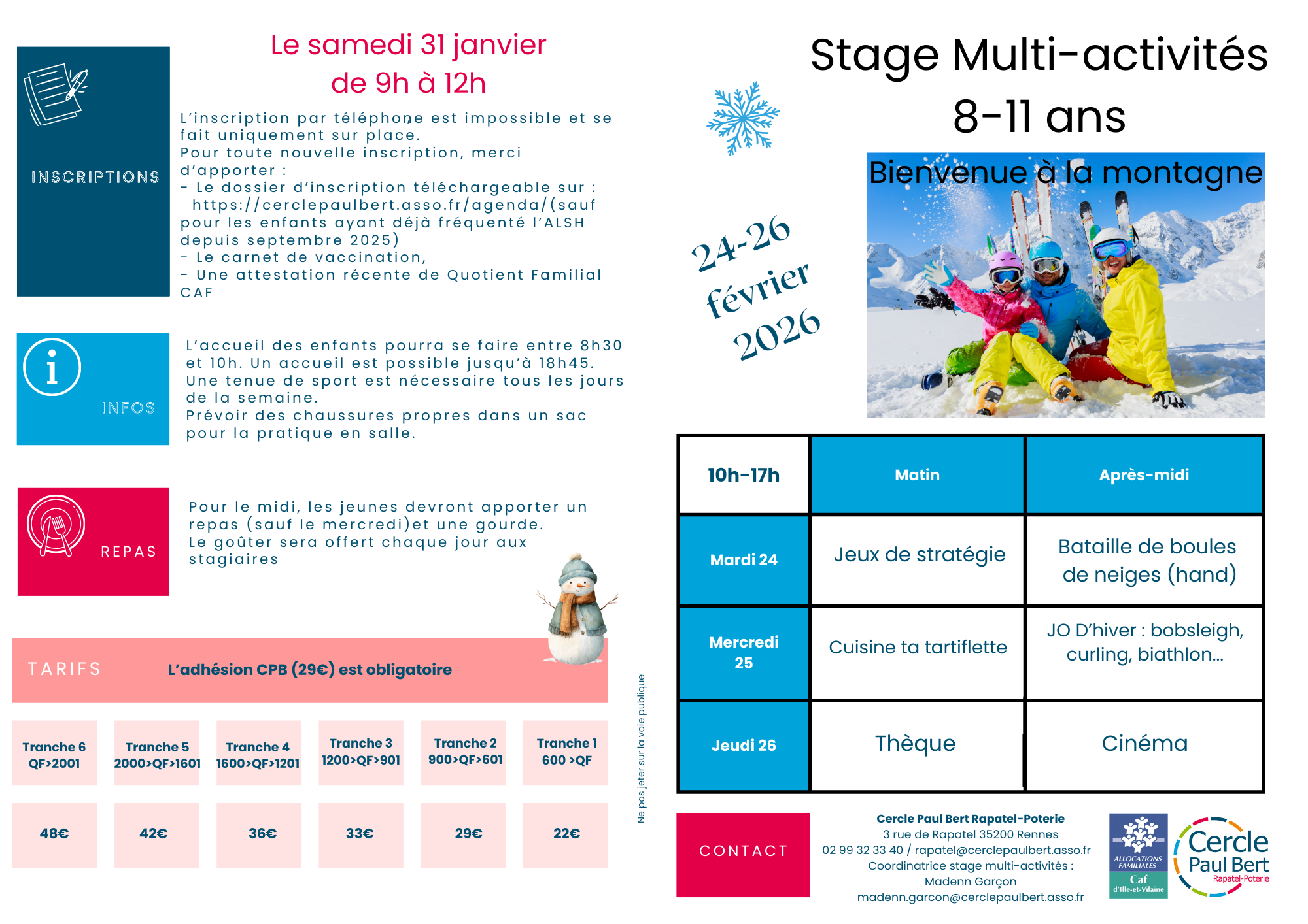Inscriptions samedi 31 janvier 9h-12h