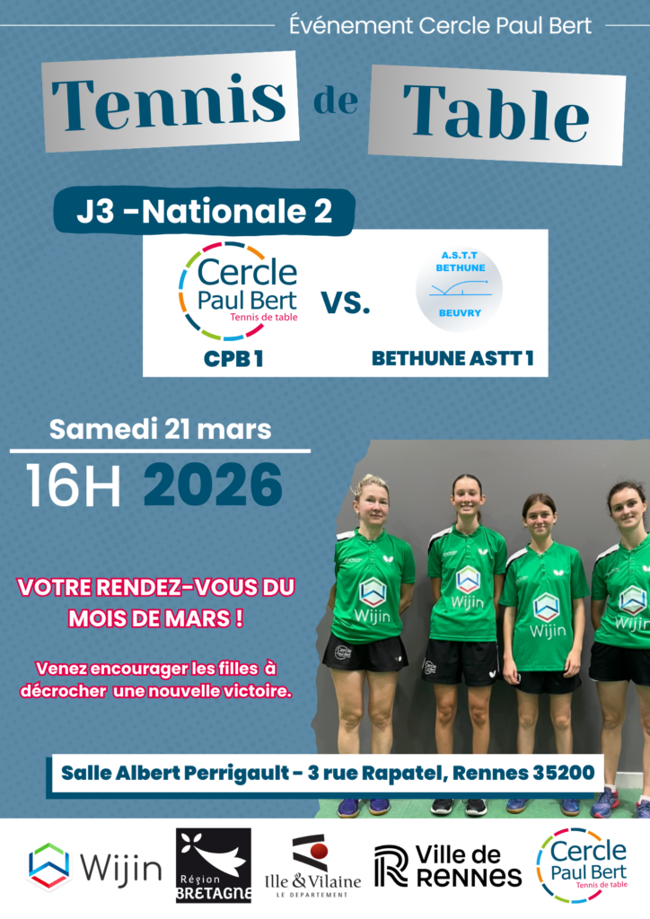 Rencontre féminine CPB 1 contre Béthune ASTT 1.