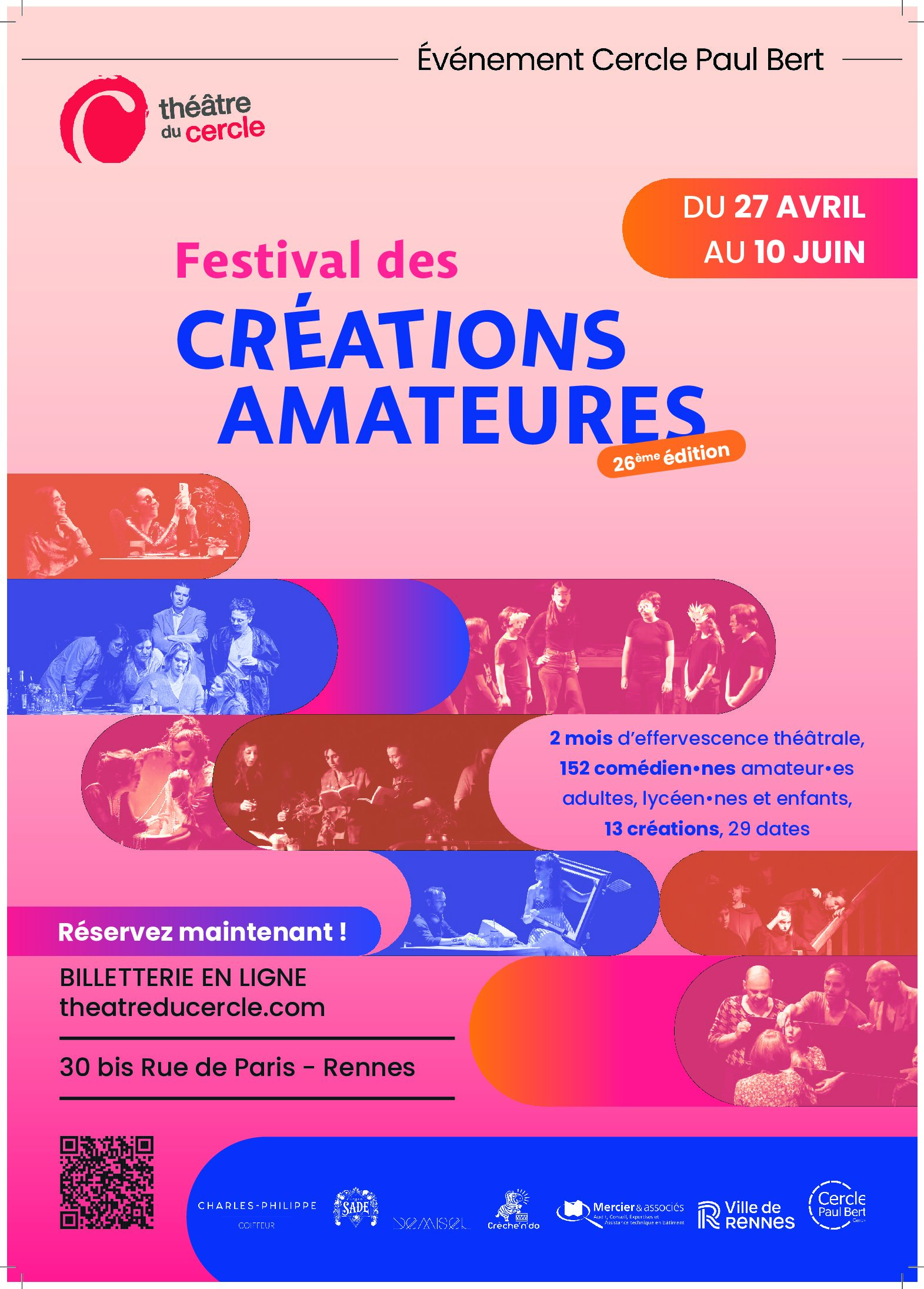 À partir du 28 avril 2026 débutera une nouvelle édition du Festival des Créations Amateures, un rendez-vous incontournable porté par le Théâtre du Cercle depuis plus de 25 ans : chaque année, ce festival met à l’honneur la pratique du théâtre amateur en offrant aux troupes issues des ateliers annuels. Encadrés par des metteur·euses en ... Lire la suite